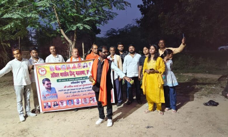 गोवर्धन पूजा शुभ अवसर पर चर्चित हिंदुत्ववादी संगठन अखिल भारतीय हिंदू महासभा के पदाधिकारियों एवं कार्यकर्ताओं द्वारा एक कार्यक्रम का आयोजन किया इस अवसर पर संगठन के कार्यकर्ताओं द्वारा गौ माता की सेवा की गई , एवं आम जनमानस को गौ सेवा गौ संरक्षण के लिए प्रेरित किया गया