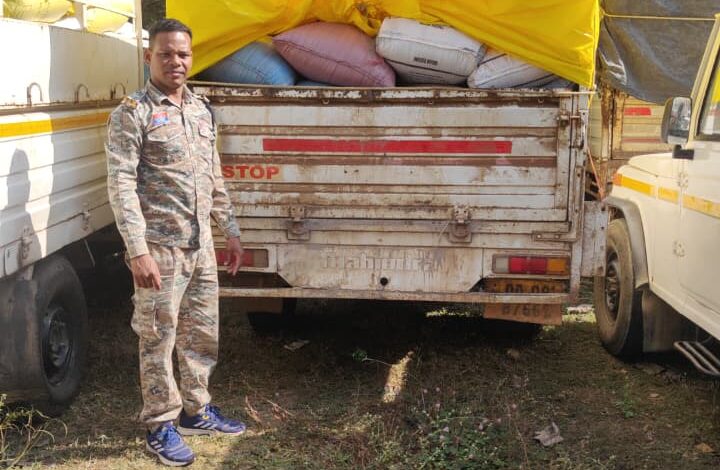 गरियाबंद पुलिस का अवैध धान परिवहन एवं बिक्री पर लगतार कार्यवाही जारी, थाना देवभोग द्वारा 02 बोलेरो पीकअप वाहन के साथ 46 कि्ंवटल अवैध धान को किया गया जप्त।